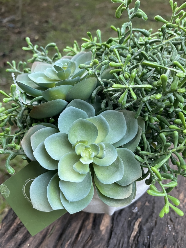 Material: resina e suculentas permanentes. Medidas: 22cm (A) x 22cm(L)