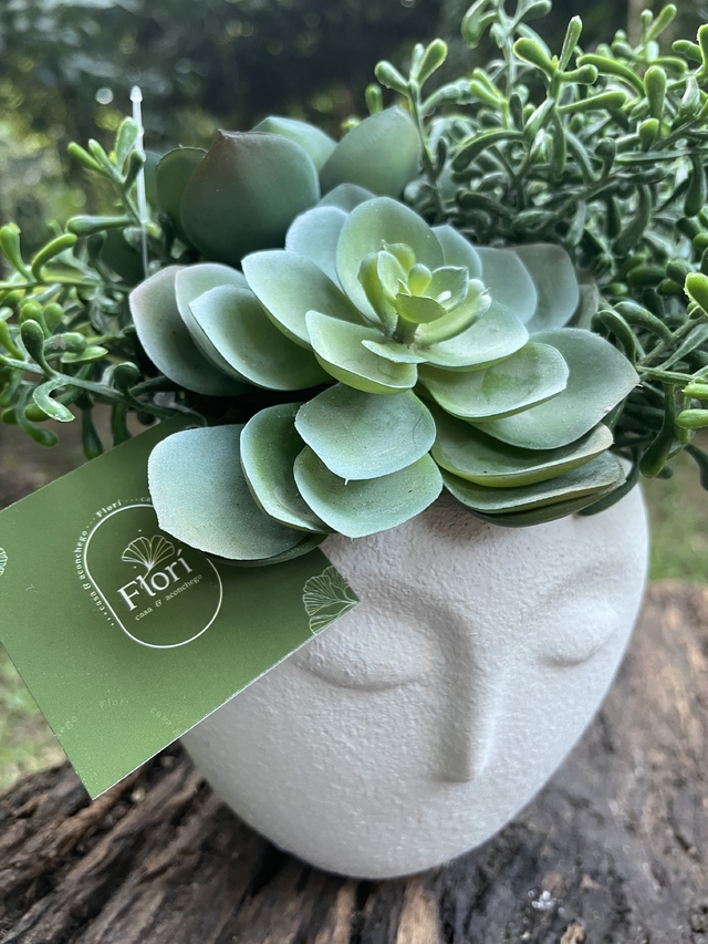 O Cachepot Rosto Suculentas é uma peça encantadora que traz um charme e alegria para qualquer ambiente. Com seu design delicado e as suculentas cuidadosamente posicionadas, ele transforma seu espaço em um cantinho cheio de vida e beleza. Ideal para decorar mesas, prateleiras ou aparadores, este cachepot é perfeito para quem ama detalhes que encantam.