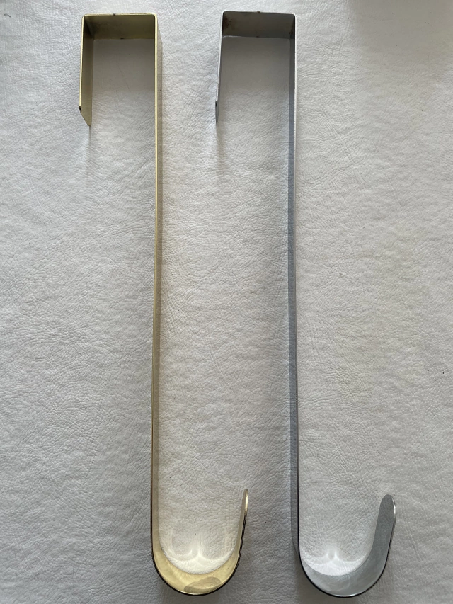 Gancho de Porta para Guirlanda em metal, nas opções dourado e prata. Medidas: 37cm (altura) x 5cm (largura) Obs:. Encaixa em portas de até 4,7cm de largura.