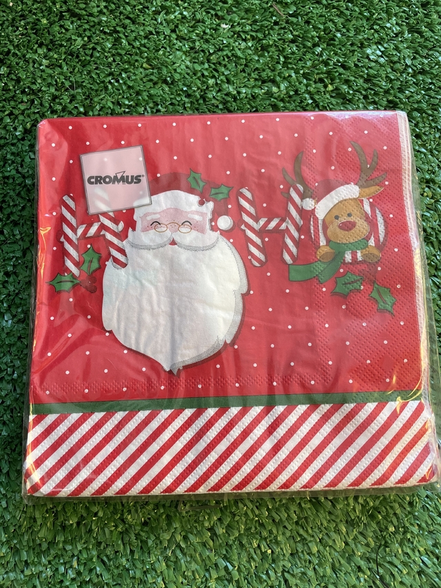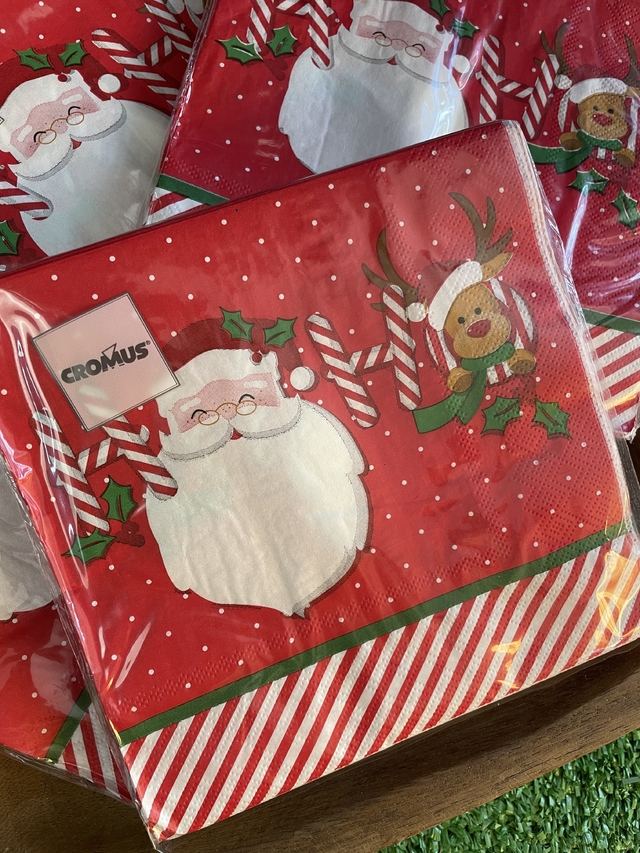 Guardanapo natalino com o nosso querido Papai Noel anunciando uma bela ceia de natal! Material: 90% polpa de celulose e 10% pigmento colorido.